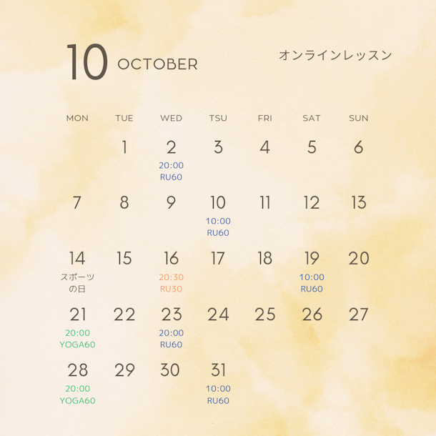 「自律神経が整う!タイ式ヨガ体験」&10月スケジュール
