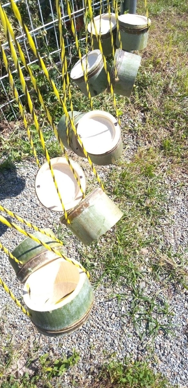 竹筒に足を乗せます。次第にそのバランス感覚に自信を持ち、カッポカッポと心地良いリズムを刻んで歩くことができます。競争したり、助け合ったりする中で、無邪気な笑い声が公園に響き渡ります。竹ぽっくりの音と子供たちの笑い声が奏でるハーモニーが、明日の思い出として心に残ることを願っています。