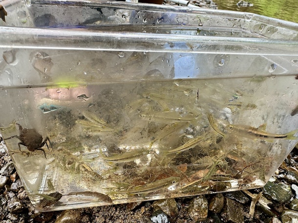 彼岸花が旬を終え、キンモクセイのじゅうたんを通って、コスモスを愛でながら、カナヘビやオンブバッタと追いかけっこをして、浅い流れに足をつける。そこではいつもの小さな生き物の世界がゲストをお出迎えする。トンボヤゴ5種盛り・小さな魚たち・カマキリ・サワガニと約40種類の動植物に囲まれた秘密の小川で生き物たちの息吹を感じてください✨ 11月中旬あたりで今年の①高尾生き物ハイクはクローズになります🍂