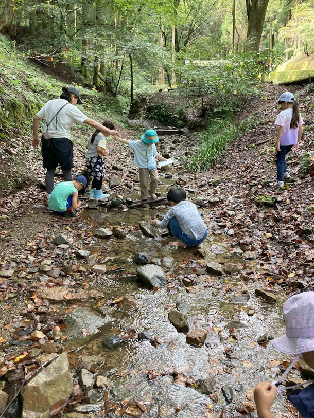 講師の方と子供たちのやり取りを聞きながら、宝物というのは気持ちの根っこにあるものなのかな、とほわんとした気持ちになりました。 午後はスタッフの方が作ってくれた汁物でお昼ご飯を食べたり、子供たちが小川で自由に水遊びをしました。
