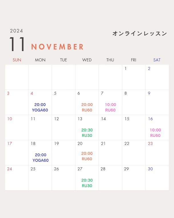 11月レッスンスケジュール🧘🇹🇭✨