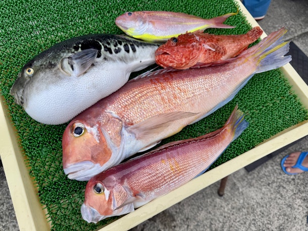 ▼アマダイ以外にもハタ・トラフグ・オニカサゴ・イトヨリダイなどの高級魚が混じることも