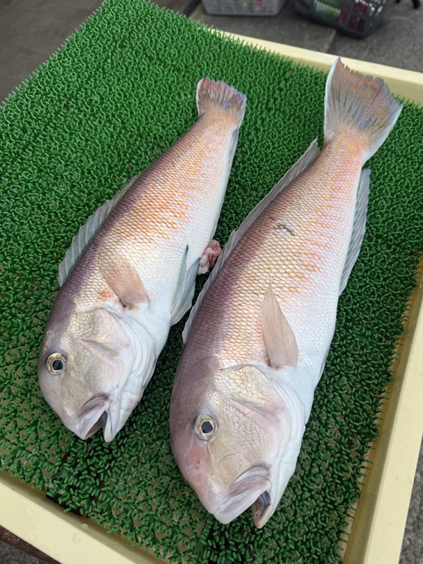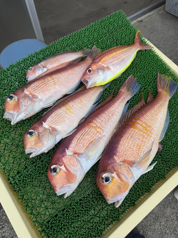 ▼10月27日に開催したアマダイ釣り教室の様子です(参加者8人全員がアマダイをゲット。全体で25尾ほど釣れていました。46cmのシロアマダイや42cmのアカアマダイなどのほか、いろんな美味しい魚が釣れました。超高級魚の良型シロアマダイをおひとりで2尾釣った方も!