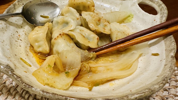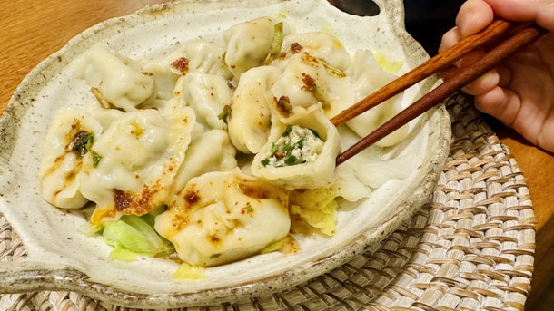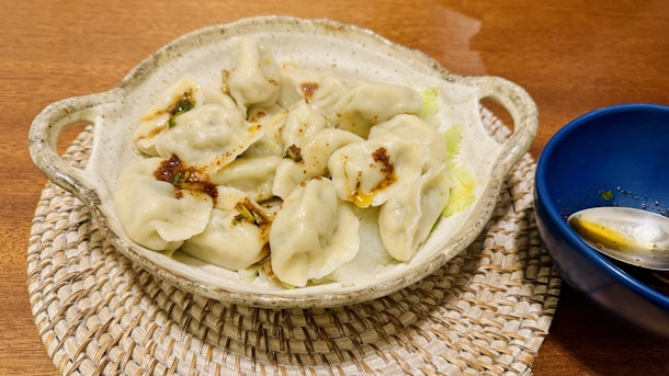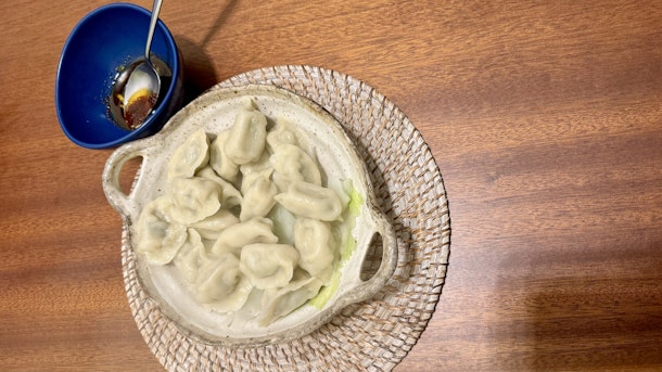 お湯沸かし、餃子を冷凍庫から出しました。餃子は2、3週間前作ったもの。
