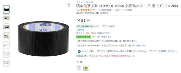 - 裏面にダクトテープなど防水テープを貼る