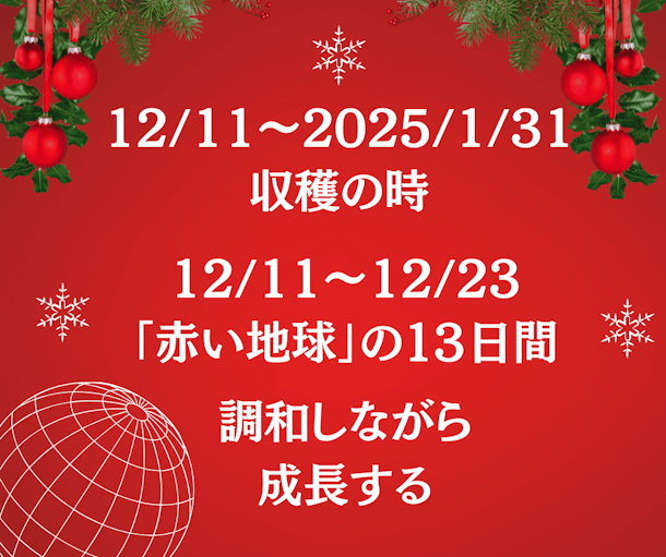 来年1/31までは収穫の時。12/23までは、調和し成長する