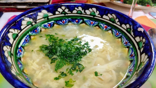 ③ チヒルトゥマ(丸鳥のスープ、ほぐし卵入り))