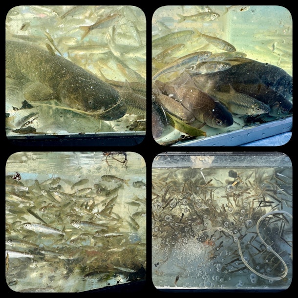 魚はオイカワ・ヨシノボリ・ナマズ・マブナ・コオニヤンマヤゴ・コヤマトンボヤゴなど多数を観察🐟 カワセミやトビに囲まれた素敵な環境で冬晴れの魚観察を楽しみました✨