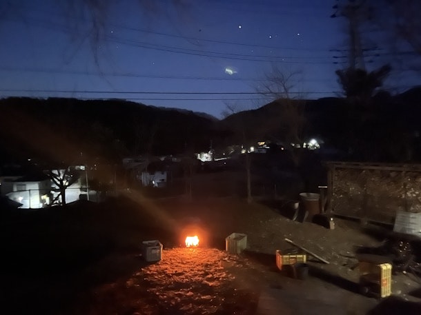 青大豆を茹で始める、まだ暗い早朝は−10℃を下回ったものの、日中は晴れ渡り、風もなく穏やかな陽気の一日でした。
