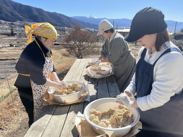 畑とつながる台所の教室〈お味噌&豆板醤づくり〉を開催しています。