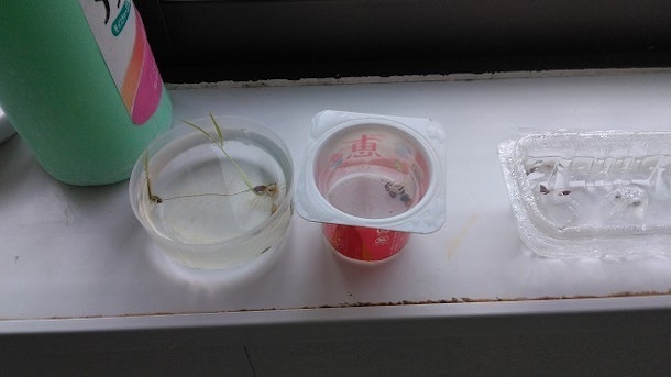 外で水につけた種は まだ芽が出ないですが 暖かい日が続いております。
