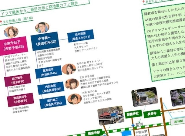 カフェツアーの際の配布資料として、「ドラマ最後から二番目の恋と路地裏カフェ散歩」なる栞を作成中です。