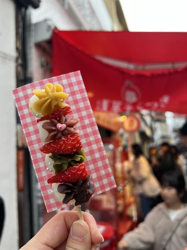 ドラマや映画好きの方にオススメなちょこっと情報を交えつつ、江戸の昔も食べられていた4つ団子🍡を食べ歩き、そして大河ドラマ館にて"べらぼう"ドラマで登場した花魁瀬川の輿入れ時の白無垢衣装を堪能‼︎