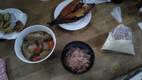 テントにロープ貼って 藁細工を吊ってみよう。風邪次第だな。