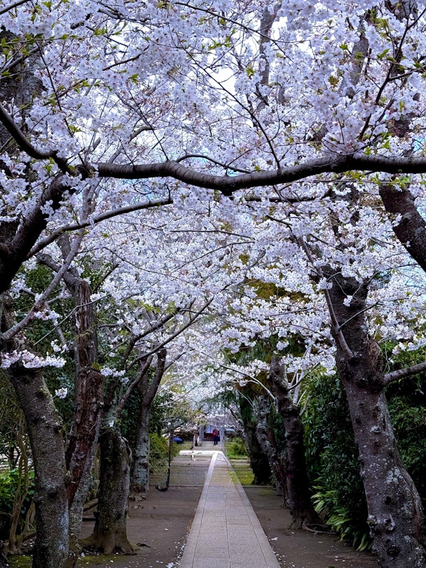 こちらは集合場所近くの極楽寺の境内です。桜に覆われています。