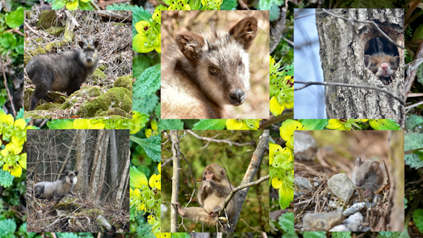 山に向かって川沿いを歩くと、なんとハツカネズミが猛ダッシュしていたり、3頭のニホンカモシカと出会ったり、ニホンザルの群れと出会ったりとまさに哺乳類天国!もちろんムササビの巣もたくさんあります🪹