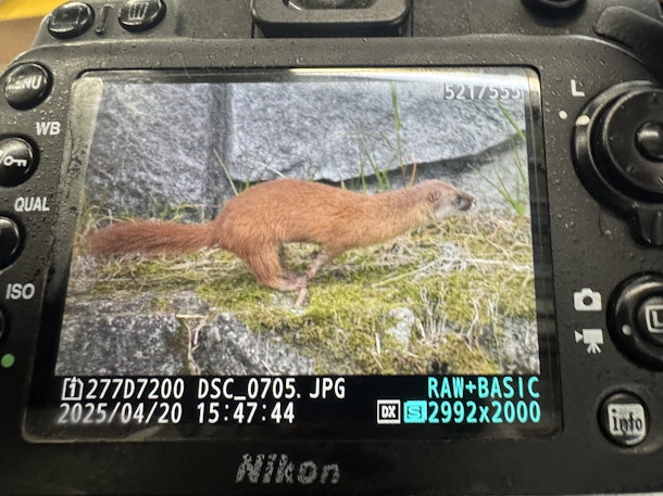 高尾ムササビナイトハイクの前はいつもの場所でニホンイタチを追いました✨ 2/7ぶりにようやく見つけました!少し夏毛に代わりつつあり、また多少動きがゆっくりでしたが相変わらずの運動能力でした☺️ 元気で良かった✨