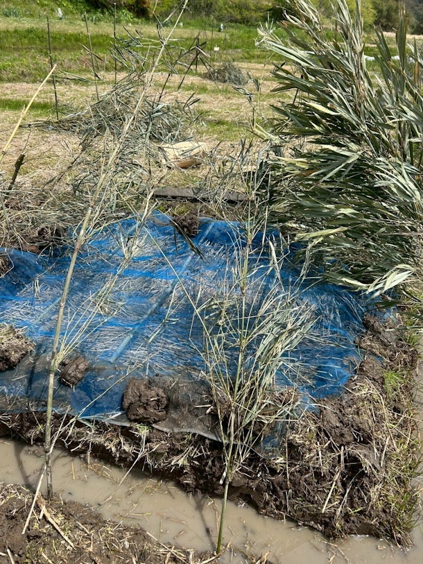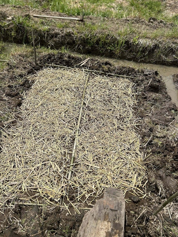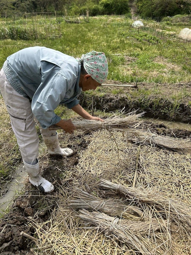長いままの藁を敷いていきます。(保湿効果を高めます)