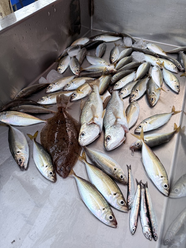 イシモチ、アジ、ムシガレイ、カタクチイワシが釣れてました。