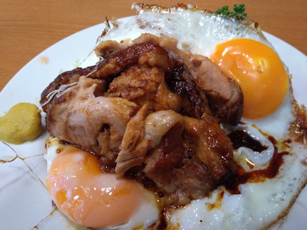 とんかつ屋で大人気曜日限定チャーシューエッグ。