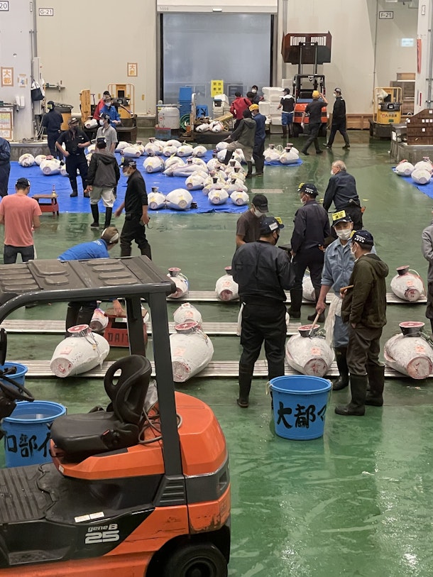 ただ、競りは想像以上にあっという間に終わってしまうので要注意。 せっかく早起きして来たのに、「え、もう終わり?」と拍子抜けする人も少なくありません。 だからこそ、できれば詳しい人と一緒に見に行くのがベスト。 競り場の見どころや、プロ同士の駆け引きのポイントを教えてもらえると、体験の深さがまるで違ってきます。