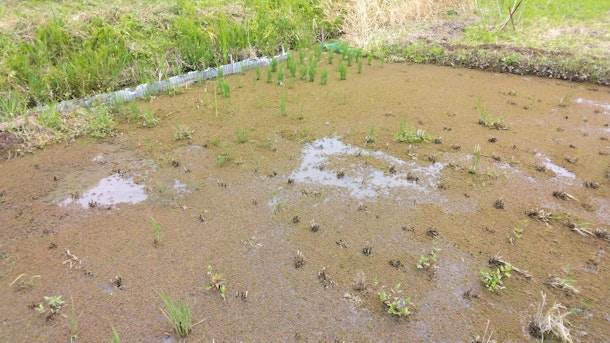 その下の田んぼの 取水口付近は 稲が生きてました。