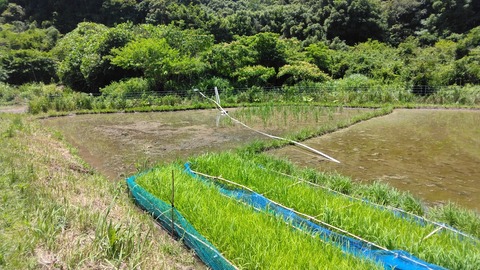 ザリガニ被害の田んぼ 徐々に 補植を始める。