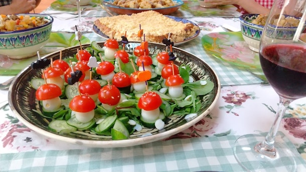 ④Салат "Мухоморы"(「キノコ」のサラダ)