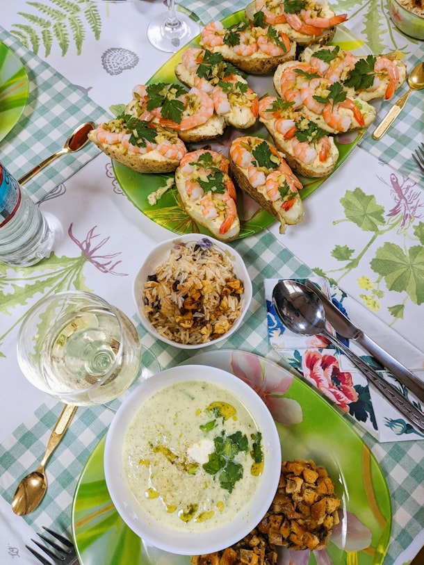 牛肉と鶏肉の意外な組み合わせで作るポジャルスキーは、外はカリカリ中はジューシーでうま味たっぷりで本当に美味しかったです! ミンチ肉を手作業で作ることも美味しさのポイントの1つなのでしょうね。 ソチヴォは、特別な日のお料理らしく見た目も素敵でほど良い甘さでクセになりそうなお米のデザートでした。 ズッキーニのスープは、キヌア入りで満腹になるので朝食にもいいですね。ズッキーニが無限に食べ続けられそうなほど美味しいスープになるとは…。 オリビエサラダ入りポテトもパーティーなどのおもてなし料理にピッタリです。 子供から大人まで万人受けしますね。 毎回ボリューミーで美味しくて美しいお料理と異国文化の楽しいお話をありがとうございます。 レシピも丁寧で分かりやすく書いてくださるので自宅再現にとても役立ちます。