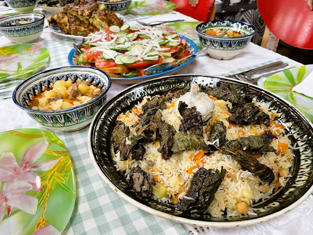 ②Картошка палов с долмой (ポテトプロフ、ドルマのせ)お肉が入っていないプロフ、ドルマトッピング