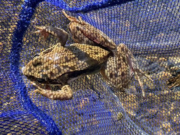 特大のヤマアカガエルメスが急に目の前をピョーンと飛びました!その跳躍力はなかなかです🐸 日陰で観察してからリリースです✨ ありがとうね😊