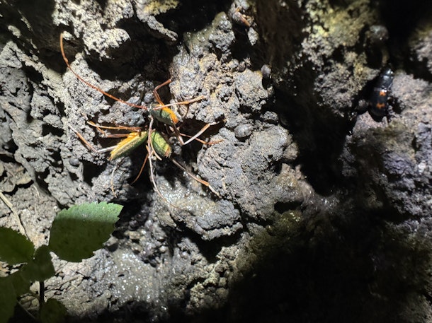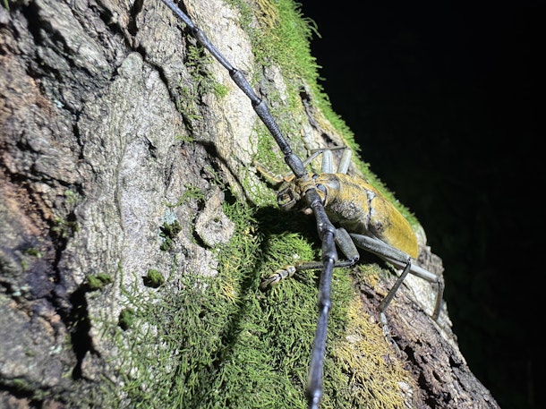 ツアー後にいつもの道を帰っているとコクワガタ数匹・アカアシオオアオカミキリ多数・ミヤマカミキリ多数を観察できました✨ 大きなノコギリクワガタのメスも見られました😊