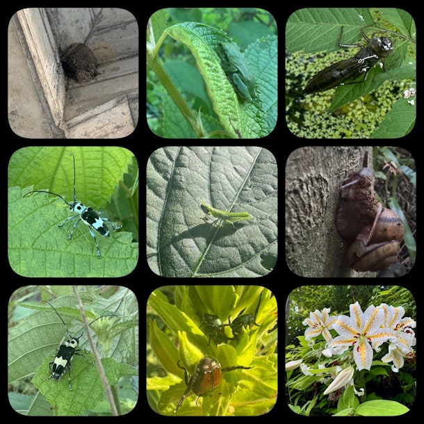毎回高尾山口で集合前に20分歩けば、ラミーカミキリ・ニホンアマガエル・オオカマキリ幼体・カタツムリ🐌・オンブバッタ・ショウリョウバッタが見られました✨