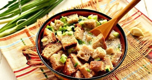 4. ふやかす: 水(またはクワス)を注ぎ、パンが完全に浸るようにする。