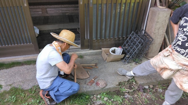 「これ、看板にいいね。焼き印の跡! どっかにあるのかな?探そう!」