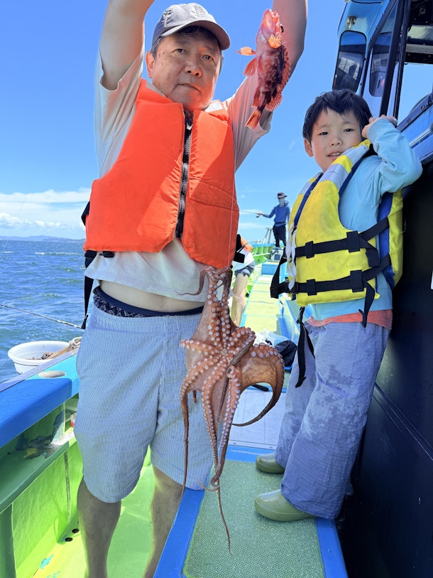 出船後、今日は暑くなるだろうなーと思っていたら、日陰になり、風も涼しく思いの外快適でした笑。