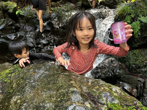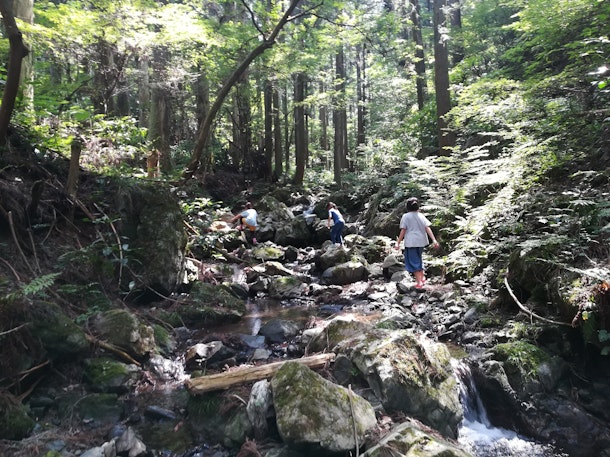 ぼくの「高尾山ワンダーランド」という 高尾山の北側での自然体験では 夏は沢遊びをメインとした 「沢遊び沢ガニさがし」と題したツアーを やっているのですが その沢遊びの中に「沢登り」と呼んでいる、 沢を上流に向かって登っていく 天然のフィールドアスレチックのような 自然のプチロッククライミングのような遊びが あります。 手足を使って岩を乗り越え、 水の中を歩いたり、どうやって登ろうか ルートを見極めてチャレンジしてみたり 沢の水深や岩の大きさがちょうどよくて 安全だけど、冒険気分が味わえる遊びです。 上流まで行ってゴールすると 下りは手がかりがつかめないので 少し危ないため 林道に出てそこを歩いて下るんですけれど これにハマる子が多くて 何周もそれをやる子がいて(最高8周) 面白いのはその1時間ちょっとの時間に だんだんとからだの使い方が上手になること。 最初はこわごわと、お母さんの手をつないで 離せなかった子が 「自分の両手を使った方が登りやすいよ!」 と伝えると、自分で登りはじめて あんなにこわごわとしていた子が いつのまにかみんなの先頭をずんずん進んでいったり。 ゴール地点には小さな滝があって その水を頭から浴びて修業しちゃう子や おいしい湧き水もあるので ゴールしたご褒美的に それをごくごく手ですくって飲んだり。 夏ならではの、楽しい涼しい気持ちいい 体験が味わえます。 昨日も体験を開催して 沢登りの最中にお父さんが「楽しいね」と 声をかけた女の子が 「来てよかった!」と満面の笑みでした。 今設けている開催日の他にも まだ開催できますので よかったら日程ご検討いただいて 「予約リクエスト」をしていただけたらと思います。