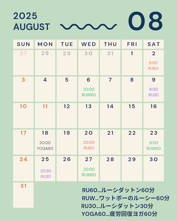 8月レッスンスケジュール🧘リクエストもお待ちしてます✨