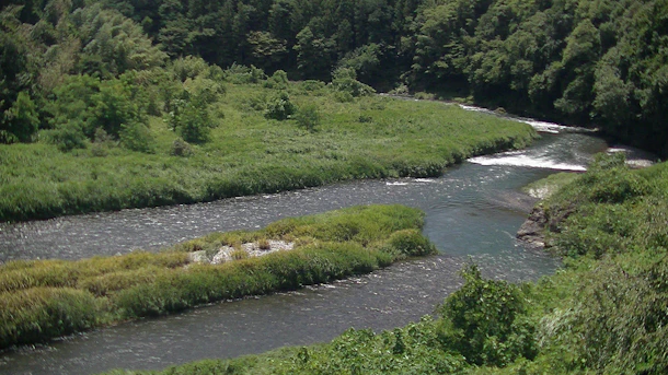 つまり、この付近は、ダムのない時代においても流れが穏やかに安定していて、大人数の作業に適した場所であったと述べているのです。