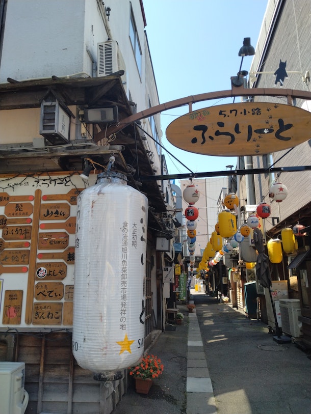 旭川市5条通。5・7小路ふらりーと。レトロでありながら、とてもお洒落です。