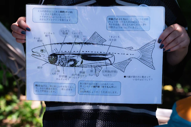 「早くつかまえたい!」と意気込む子もいれば、足元を泳ぐ魚にびっくりして一歩引く子も。 でも、みんなで協力しながらみんなでヤマメを捕まえることができました。 続いての「命の授業」では、ヤマメの体のつくりを観察。 人間と似ているところ、魚ならではの特徴などを学びながら、一つひとつ内臓を取り出していきます。