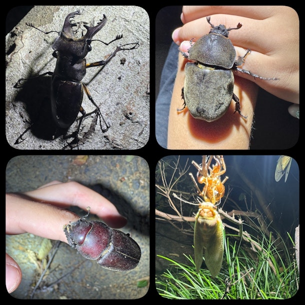 昨日7/31(木)はミヤマクワガタオス・カブトムシメス・ノコギリクワガタメス・ヤブキリ・キリギリス・アブラゼミの羽化シーンなど多彩でした✨ 昨日は不思議と僕よりも生き物に出会える力を持った子どもさんも参加してくれました☺️ 全くガツガツしていない優しい性格が生き物たちを引き寄せたのかもしれません✨ もちろんすべてリリースです🌻