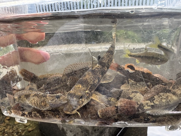 雨が少ないため、川に魚が取り残されていて参加者全員で追い込んでカワムツを捕まえたり、たくさん取り残されていたカジカやカマツカを採集したりといつもはできない【日本淡水魚祭り】でした🐟🐟