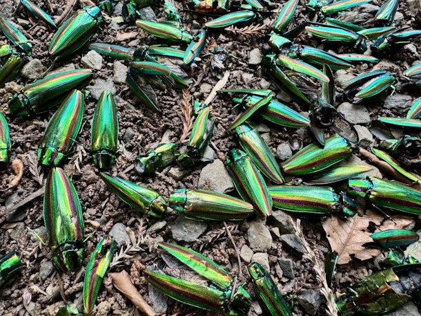 数えきれないほどのヤマトタマムシの死骸