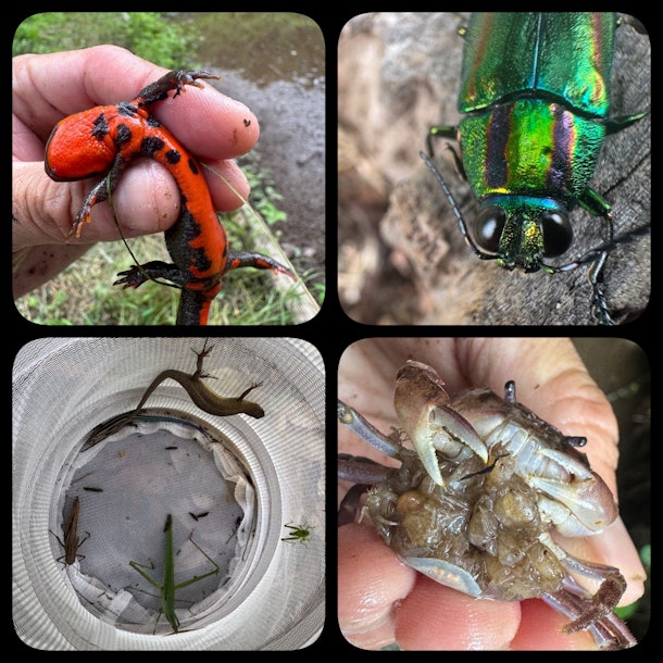 山の観察の後には川の観察に向かい、コオニヤンマヤゴ・コヤマトンボヤゴ・コサナエヤゴなどとカジカ・シマドジョウを観察します✨ 小さな沢で無数のサワガニにも会えますよ🦀