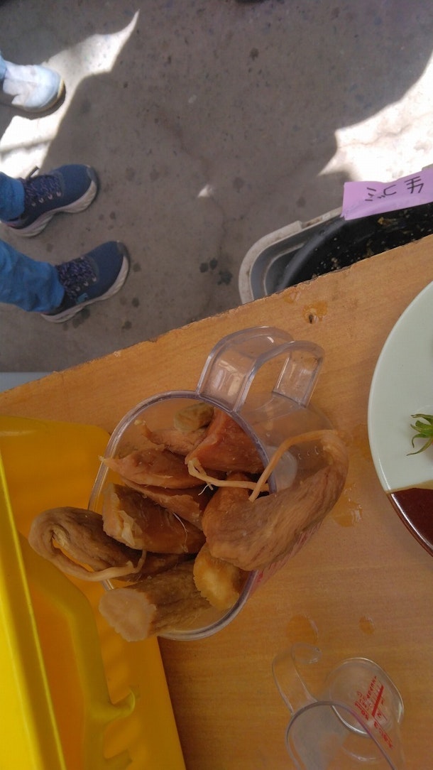 「端っこの方はダメだったけど。塩多めだね。ほら!塩抜きしたから食べてみて!」