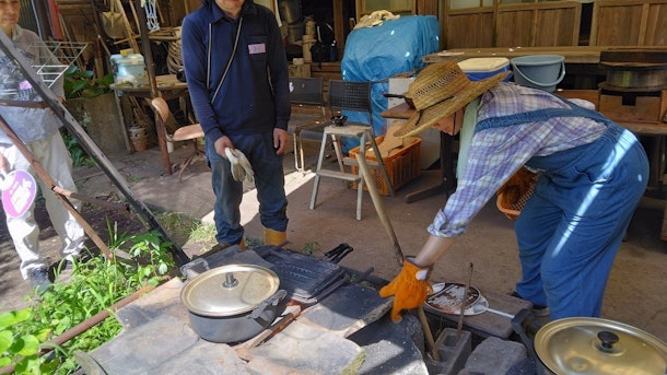 皆さんの持ち寄り食材と、六郎右衛門の皆さんの畑からの食材と~~ ま~ 楽しい お調理時間!!