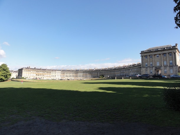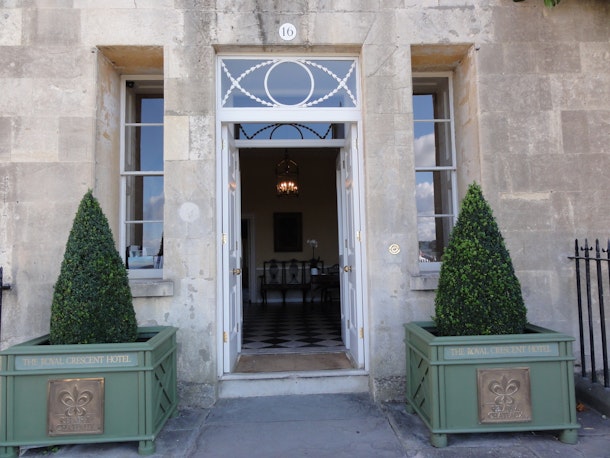 イギリス、バースで訪ねた「ロイヤル・クレセント・ホテル」、三日月のような形をしていました。