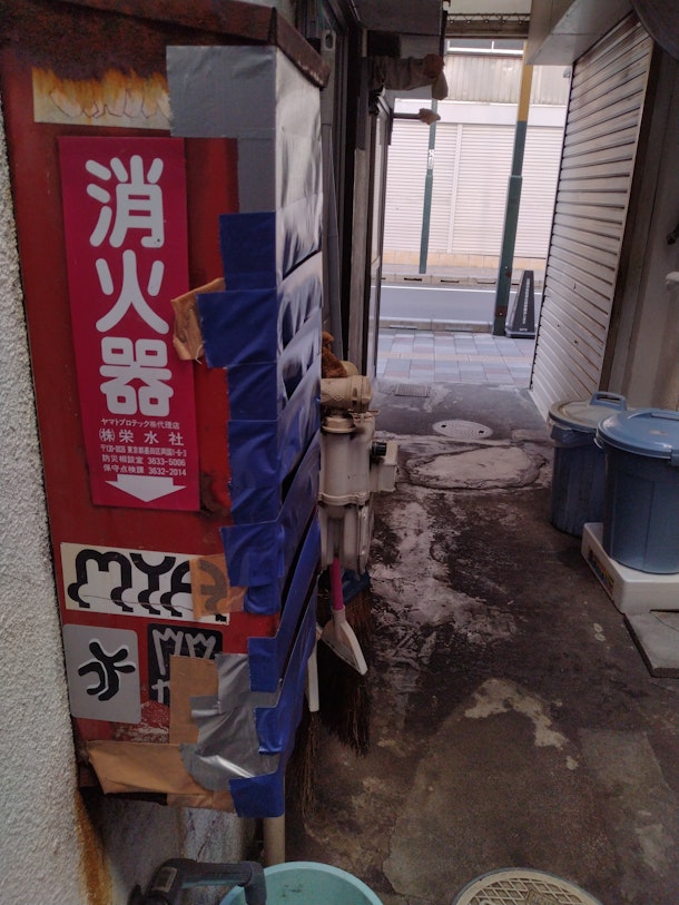 消火器には無数のガムテープ⁉が・・・。