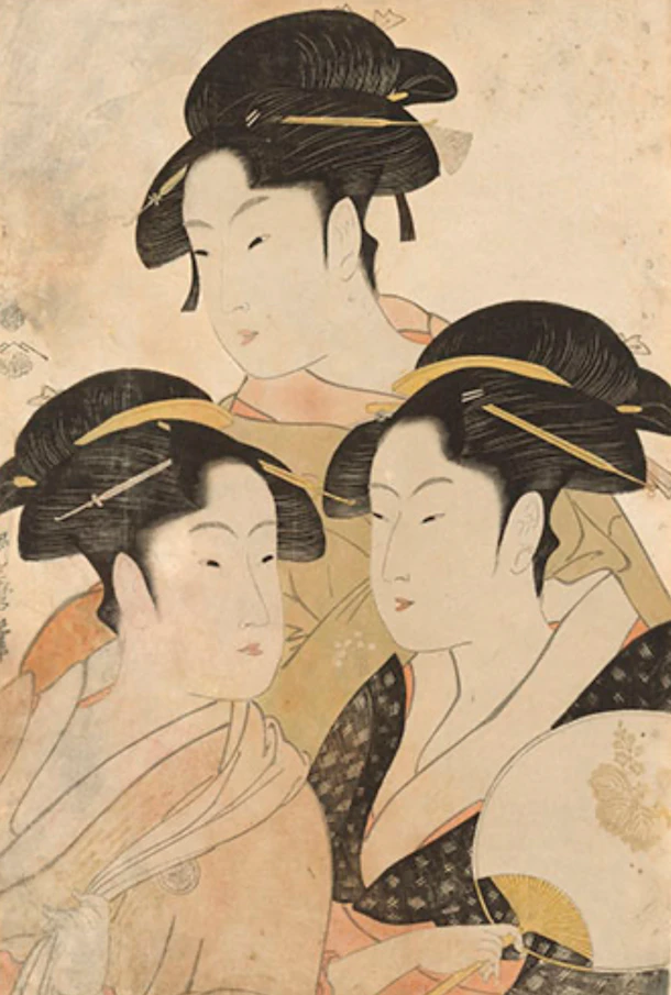 江戸時代の浮世絵師・喜多川歌麿が描いた「寛政三美人」。難波屋おきた、高島おひさ、富本豊ひなの三人は、当時の江戸を代表する美女でした。